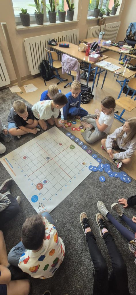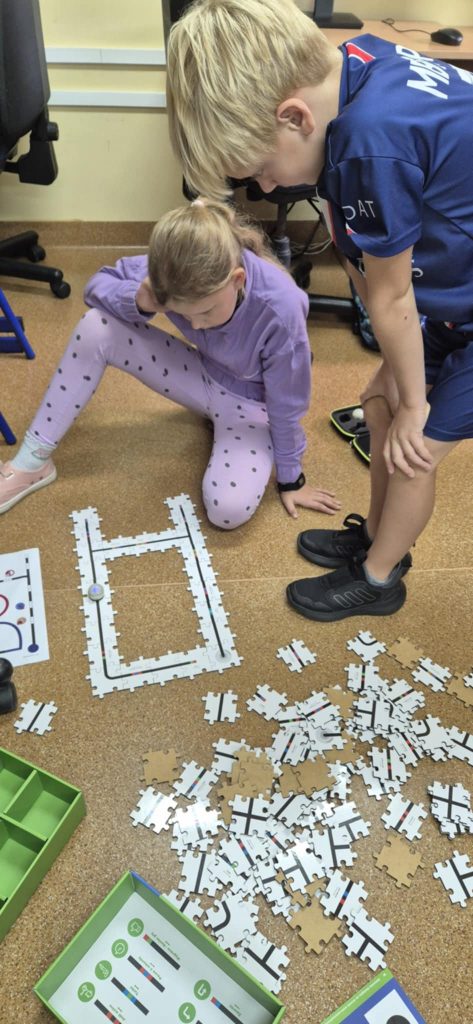 Dzieci pracowały na macie do kodowania w ramach programu „Kodowanie na dywanie”. Uczniowie musieli wykazać się logicznym myśleniem i umiejętnością współpracy, aby zakodować właściwe kierunki i kroki. Kolejnym punktem zajęć było programowanie trasy dla Ozobotów – małych robotów edukacyjnych. Ozoboty poruszały się po wyznaczonych ścieżkach, odwiedzając przygotowane przez dzieci „stacje kreatywności”. Zajęcia dostarczyły dzieciom nie tylko dużo radości, ale także rozwijały ich zdolności matematyczne i logiczne. Dzięki połączeniu technologii i twórczego myślenia, uczniowie mogli przekonać się, że każdy może być kreatywny – wystarczy tylko… postawić swoją pierwszą kropkę!