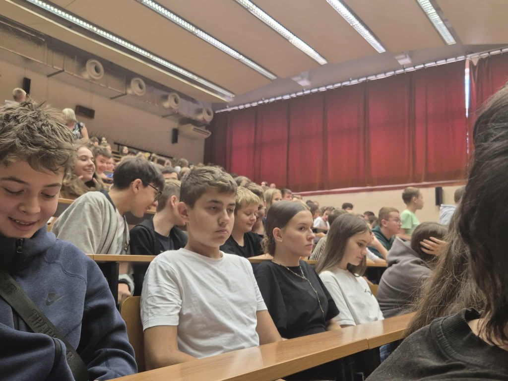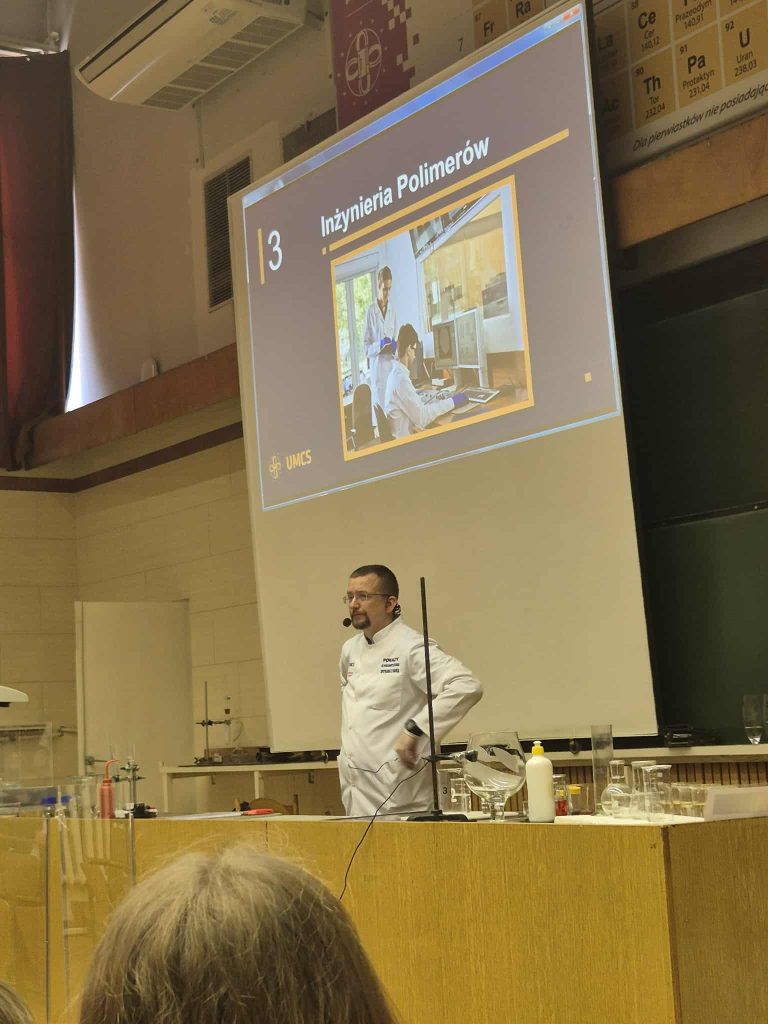 Uczniowie klasy 8 mieli wyjątkową okazję uczestniczyć w pokazach fizycznych i chemicznych zorganizowanych przez Uniwersytet Marii Curie-Skłodowskiej w Lublinie. W trakcie wizyty uczniowie mogli na własne oczy zobaczyć ciekawe doświadczenia chemiczne, spektakularne reakcje z użyciem różnych substancji oraz eksperymenty fizyczne ilustrujące zjawiska, o których uczą się na lekcjach. Wydarzenie było nie tylko wartościową lekcją nauk przyrodniczych, ale również inspirującym spotkaniem z nauką na poziomie akademickim. Uczniowie wrócili pełni wrażeń i nowej wiedzy, która z pewnością przyda się im w dalszej edukacji.