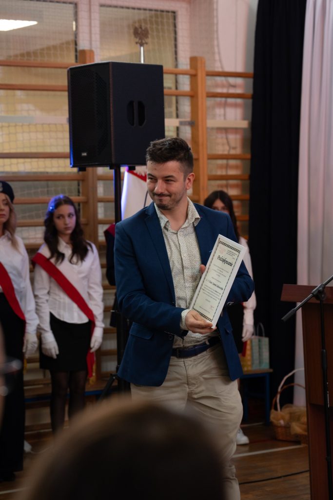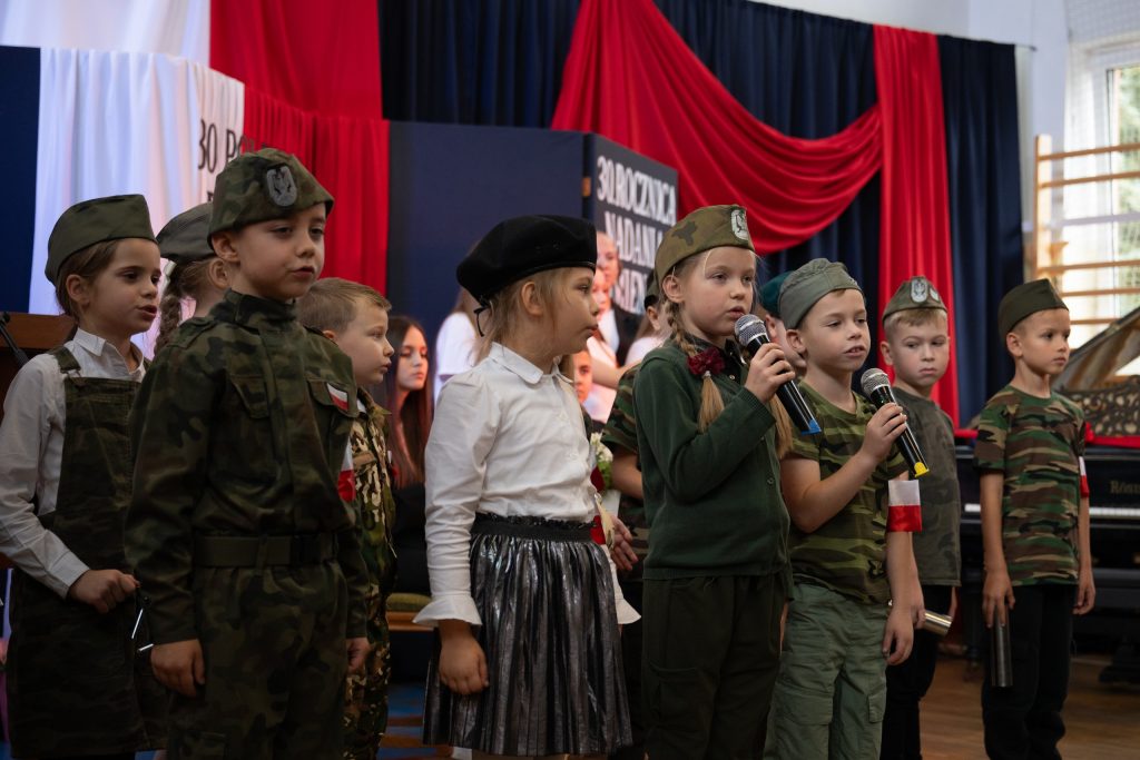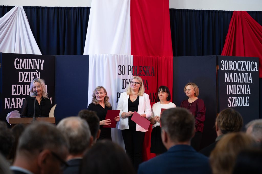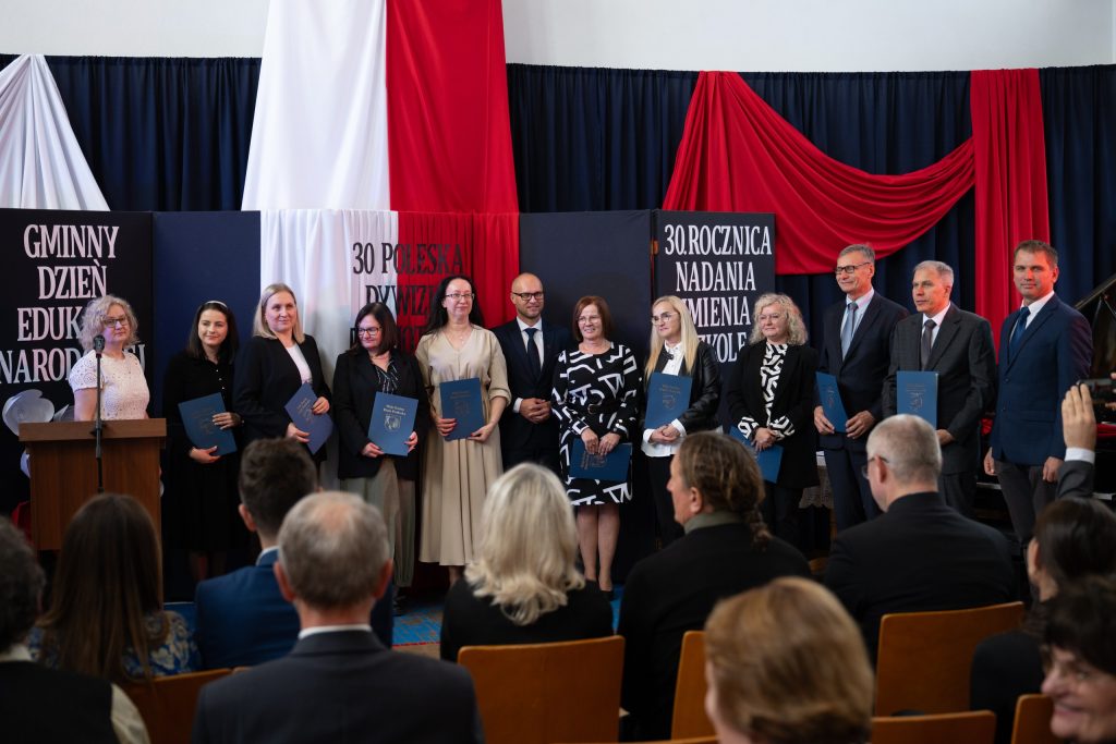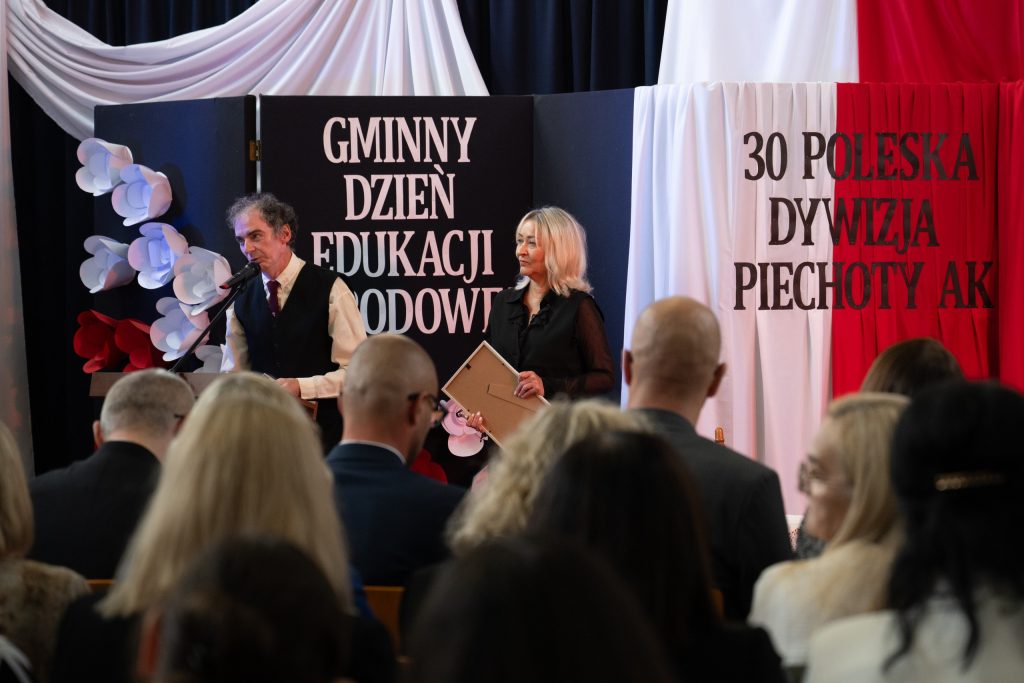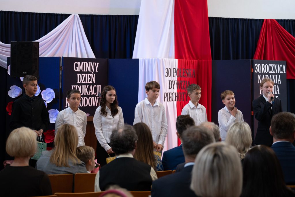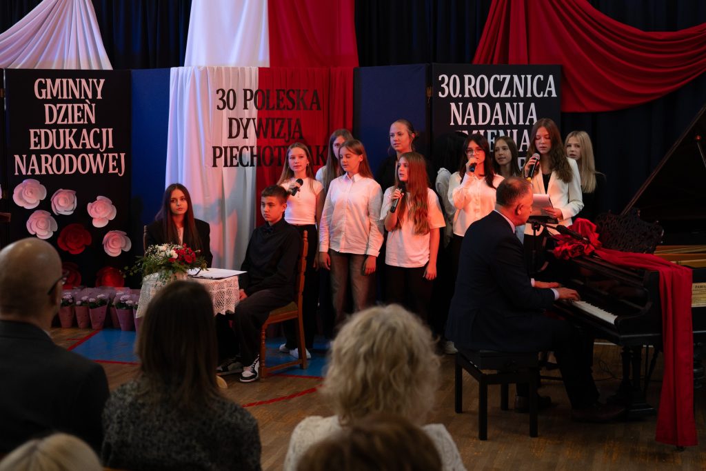 W dniu 10 października, nasza szkoła przeżywała szczególny, pełen wzruszeń i dumy moment – uroczystość 30-lecia nadania imienia 30 Poleskiej Dywizji Piechoty Armii Krajowej. Wydarzenie to zostało połączone z obchodami Gminnego Dnia Edukacji Narodowej, a także z wyjątkową ceremonią przyjęcia daru – fortepianu przekazanego przez darczyńców z okazji jubileuszu szkoły. Uroczystość zgromadziła licznych gości: dyrektorów szkół i przedszkoli z terenu gminy, przedstawicieli władz samorządowych, rodziny zmarłych kombatantów Armii Krajowej, a także całą społeczność szkolną – uczniów, nauczycieli, pracowników i rodziców. Ich obecność nadała wydarzeniu wyjątkowego charakteru i podkreśliła wagę wspólnego pielęgnowania pamięci historycznej oraz wartości patriotycznych. Podczas ceremonii oddano hołd bohaterom Armii Krajowej, wspominając nie tylko ich odwagę, ale i niezłomnego ducha walki o wolność Ojczyzny. Wspólna refleksja nad dziedzictwem patrona szkoły stała się okazją do wyrażenia wdzięczności wobec tych, którzy swoje życie poświęcili służbie Polsce. W ramach obchodów uhonorowano również nauczycieli i pracowników oświaty, których codzienna praca stanowi fundament edukacji, wychowania i kształtowania młodych serc oraz umysłów. Szczególnym i wzruszającym momentem było uroczyste przyjęcie fortepianu – daru przekazanego szkole przez życzliwych darczyńców. Ten szlachetny gest, dokonany z okazji jubileuszu, jest nie tylko symbolem wsparcia, ale także troski o rozwój artystyczny i duchowy młodego pokolenia. Fortepian już niebawem zapełni szkolne sale dźwiękami muzyki, stając się ważnym elementem życia kulturalnego naszej społeczności.